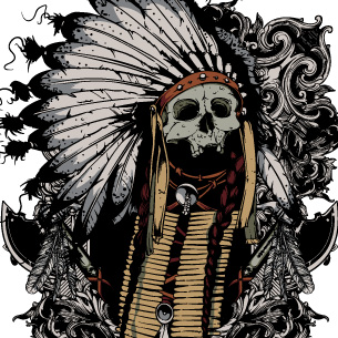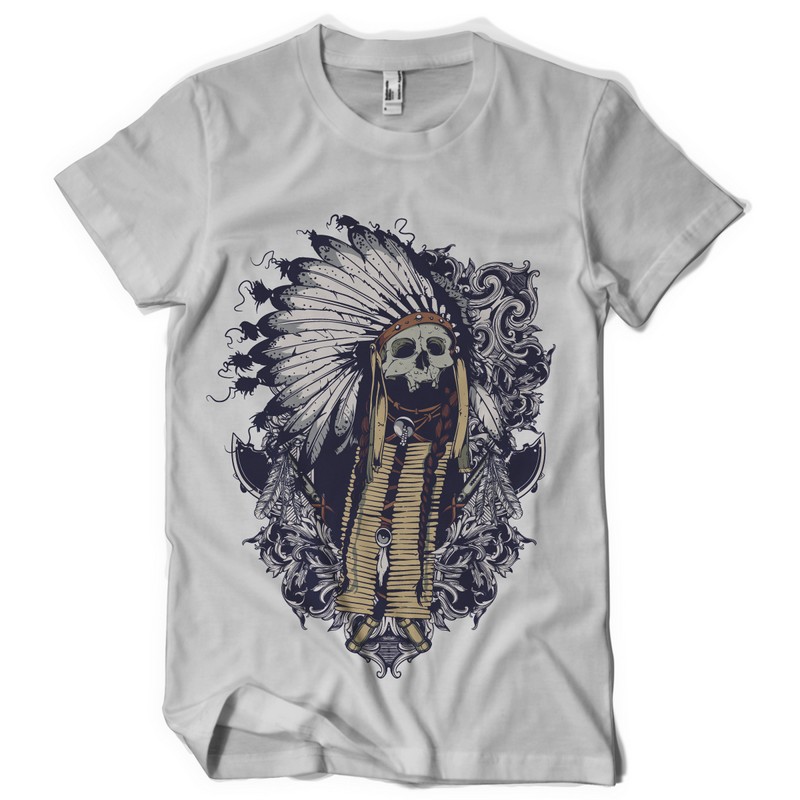 Indian Soul digital design in vector format, featuring detailed indian skull now available for Adobe Illustrator, Adobe Photoshop and Corel Draw and can be used for digital printing and screenprinting .