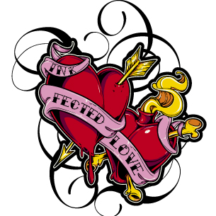 Infected love design template in vector format, featuring detailed arrowed hearts now available for Adobe Illustrator, Adobe Photoshop and Corel Draw and can be used for digital printing and screenprinting .