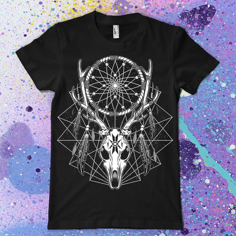 Infinty Dream t-shirt design features a native dreamcacher detailed screen print now available for Adobe Illustrator, Adobe Photoshop and Corel Draw and can be used for digital printing and screenprinting