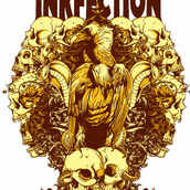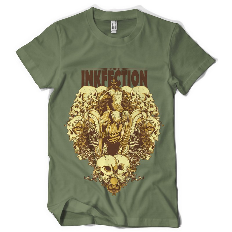 Inkfection prey digital artwork in vector format, featuring detailed crowd of skulls and eagle now available for Adobe Illustrator, Adobe Photoshop and Corel Draw and can be used for digital printing and screenprinting .