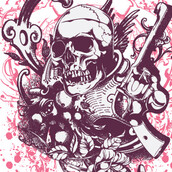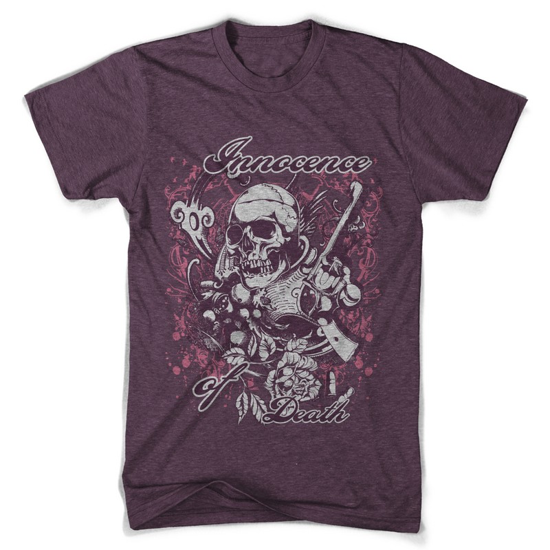 Digital design featuring detailed skull killer. Innocence of death template is available in vector format and can be used for digital printing and screenprinting. The file will be available for Adobe Illustrator, Adobe Photoshop and Corel Draw.