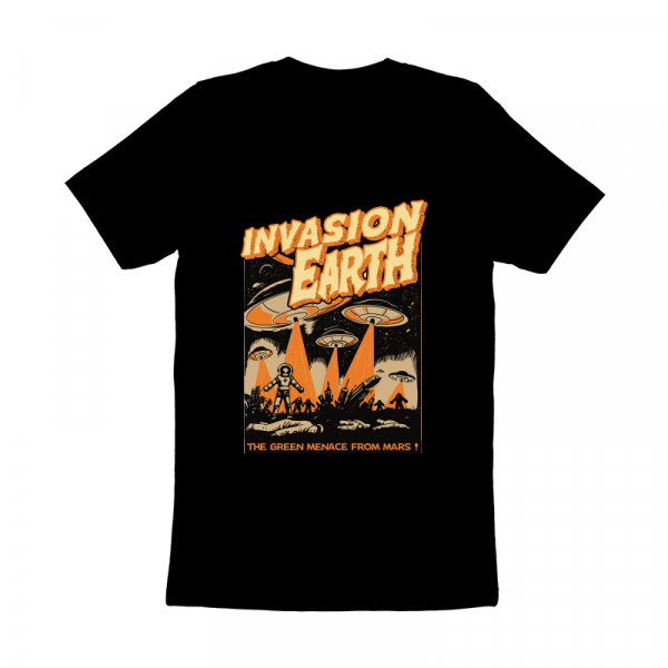 This design “ invasion earth ” is made in Adobe Ilustrator is ready for print.
