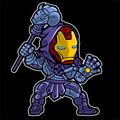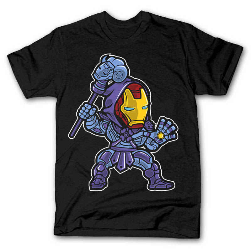 Iron Skeletor Cartoon character style T-shirt design template , The file is AI , CDR, PSD separated Layers. Can be used for digital printing and screen printing.