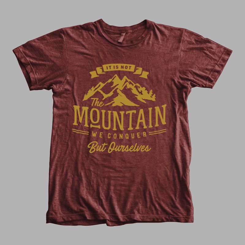 "It Is Not The Mountain We Conquer, But Ourselves" Typography, hand made style t-shirt design.