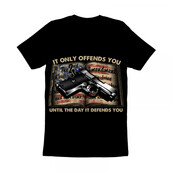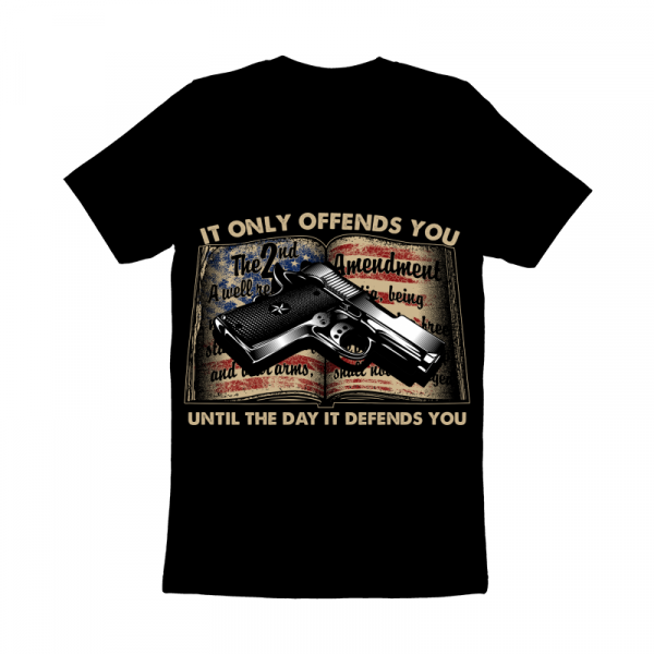 “IT ONLY OFFENDS YOU UNTIL THE DAY IT DEFFENDS YOU” T-Shirt was created with Corel Draw and Adobe illustrator.Three color print, CDR,AI,PNG. Can be used for digital printing and screen printing