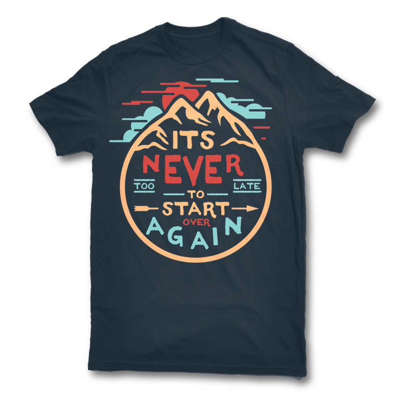 It's Never Too Late t Typography Design created with CorelDraw .3 colour print, AI, CDR, PSD File separated Layers. Can be used for digital printing and screen printing.