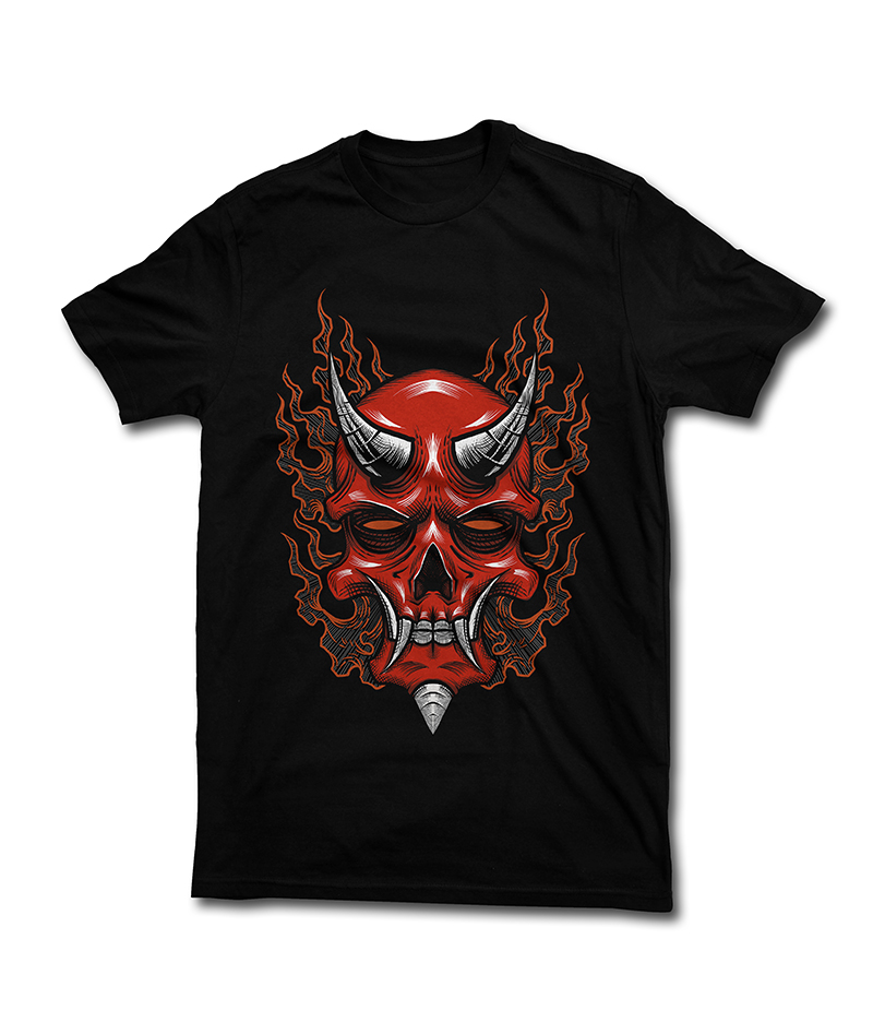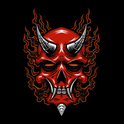 Vector illustration of urban evil character in Japan. Head with red color on face they call Oni. Look evil with flame on around head.
