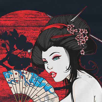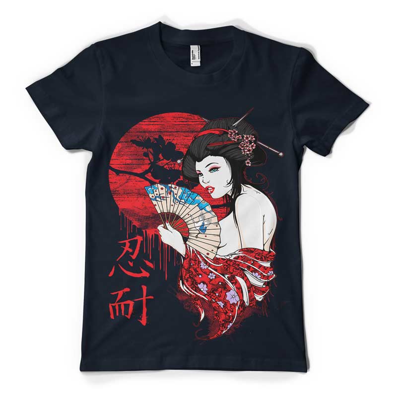 Japan t-shirt design features a detailed screen print of sexy geisha now available for Adobe Illustrator, Adobe Photoshop and Corel Draw and can be used for digital printing and screenprinting .