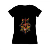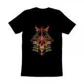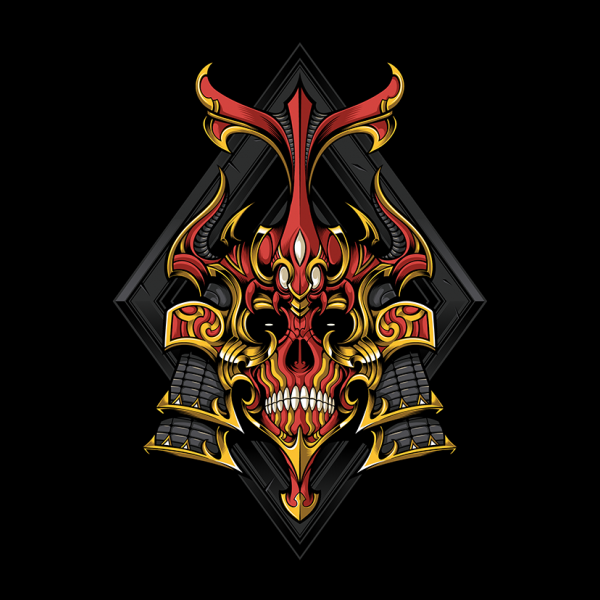 Skull illustration in Japanese style armor samurai helmet. The original motif was hercules beetle, kabuto is so common name in Japan. The red and gold color makes this illustration so stand out