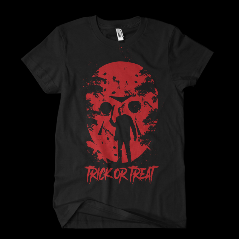 Jason mask shirt design featuring typography style quote, with details. The files available are suitable for Adobe Illustrator and Adobe Photoshop and can be used for digital printing and screenprinting.