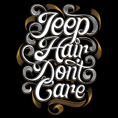 Jeep Hair Don't Care Design created with Corel Draw and Adobe illustrator. 2 colour print, CDR,AI,PDF separated Layers. Can be used for digital printing and screen printing.
