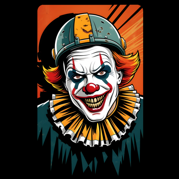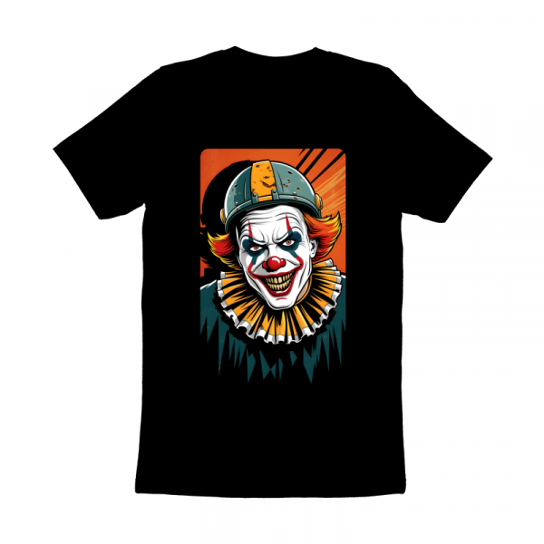 Get into the Halloween spirit and football season with "Game On," a chilling design that features a creepy clown wearing nothing but a football helmet and a terrifying grin. This sinister clown captures the perfect blend of horror and sport, making it a great choice for fans of both American football and Halloween. The eerie expression and minimal football gear create a striking, unsettling look that’s perfect for game day or Halloween parties. Ideal for anyone who loves to mix spooky with sporty in their wardrobe.