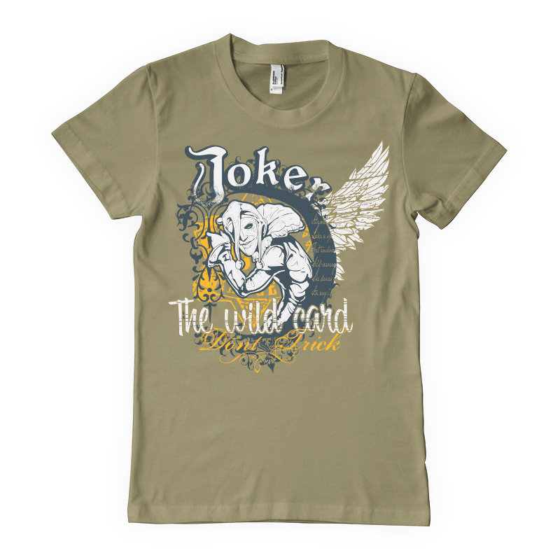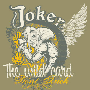 Joker graphic template in vector format, featuring detailed angel joker with flourish details , now available for Adobe Illustrator, Adobe Photoshop and Corel Draw and can be used for digital printing and screenprinting .