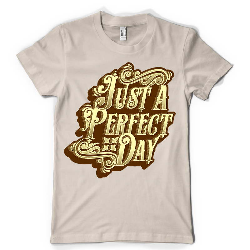 Just a Perfect Day design features a Typography detailed screen print now available for Adobe Illustrator, and Corel Draw and can be used for digital printing and screenprinting