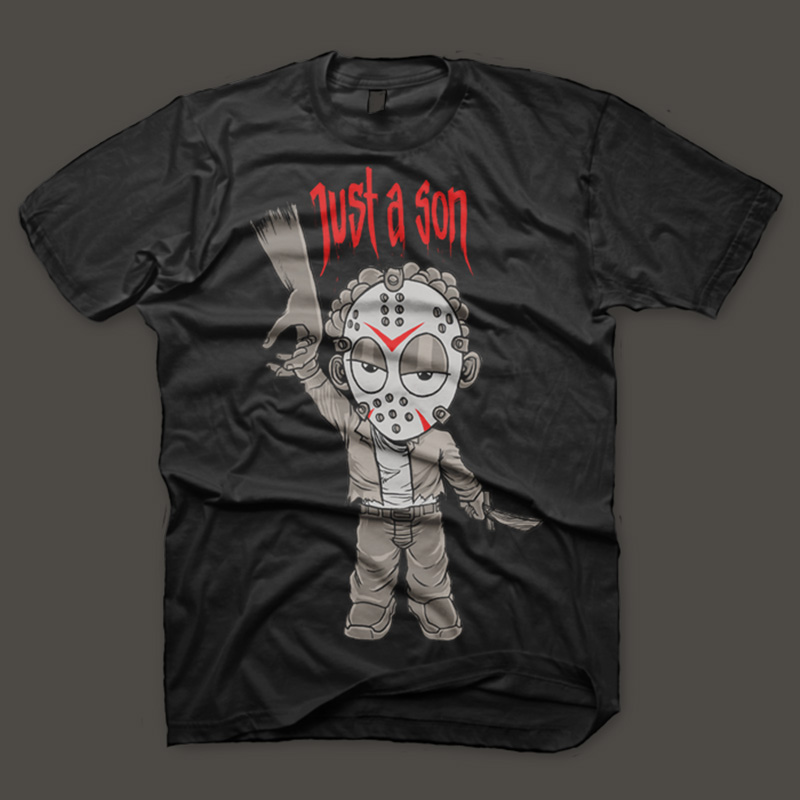 ''just a son'' is unique Illustration of a boy with football mask, with a some wood bayonate. with blank for background and use pastel colors pallete...Made with hand painting looking and dark style. Ready to print on t-shirt.