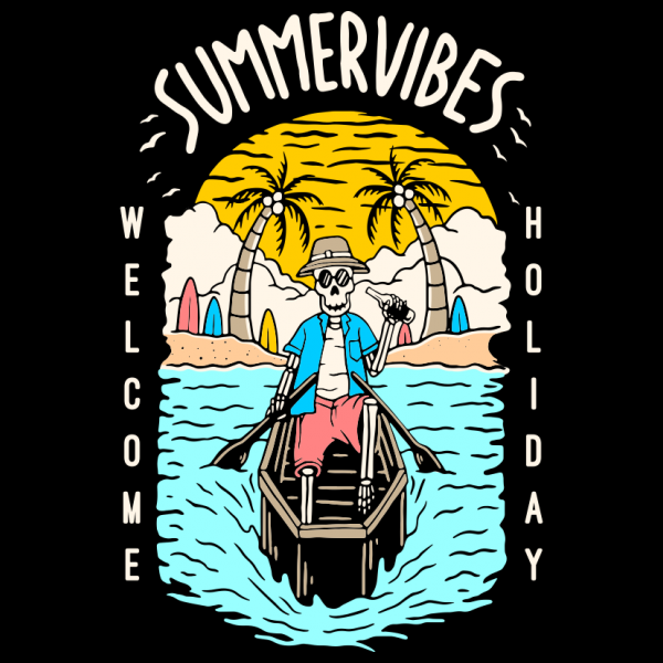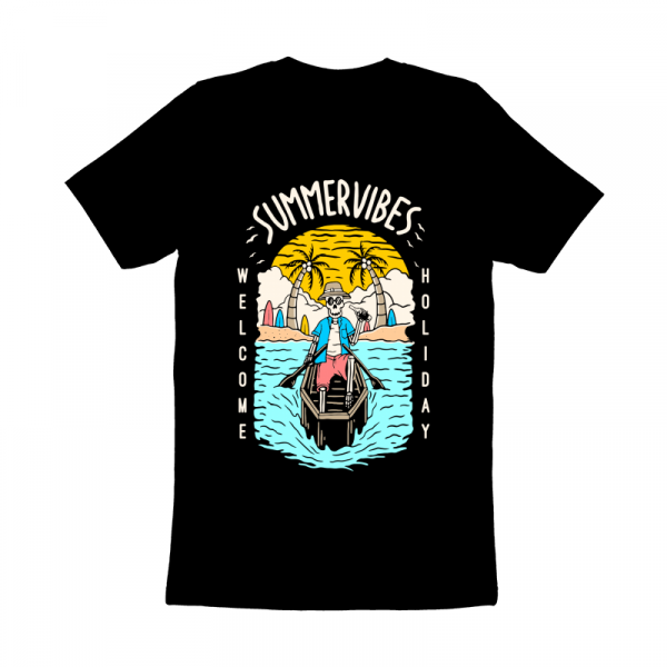 "summer vibes" T-shirt design featuring typography style illustration, with distressed details. The files available are suitable for corel draw, adobe illustrator and png (high resolution) and can be used for digital printing and screenprinting.