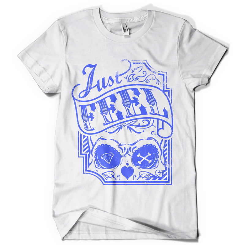 Just feel t-shirt design template in vector format, featuring detailed sugar skull now available for Adobe Illustrator, Adobe Photoshop and Corel Draw and can be used for digital printing and screenprinting .