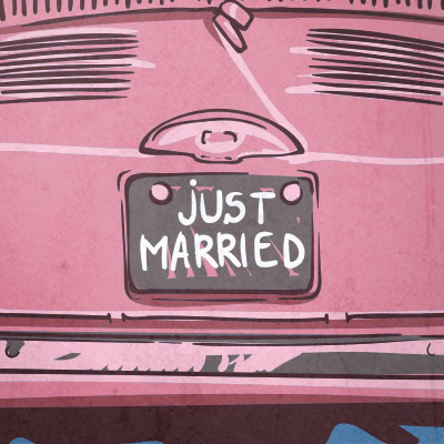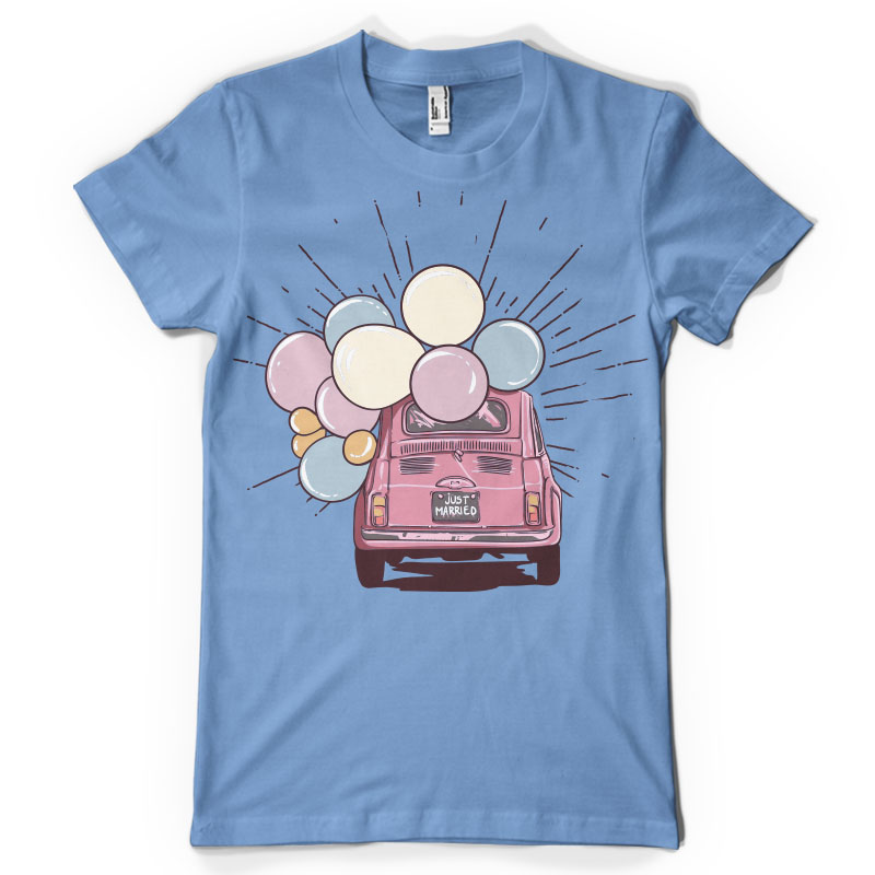 Just married- illustration made in Adobe Illustrator, this design it's featuring a vintage spouses car. It is available in AI, EPS,PNG,SVG format file.It can be used for screen printing, digital printing and t-shirt design.