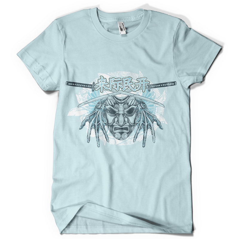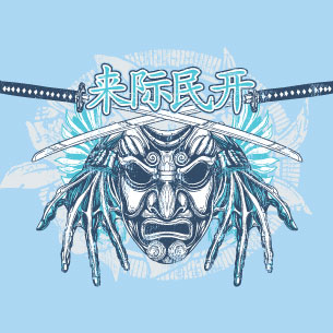Katana mask graphic template in vector format, featuring detailed katana mask now available for Adobe Illustrator, Adobe Photoshop and Corel Draw and can be used for digital printing and screenprinting .