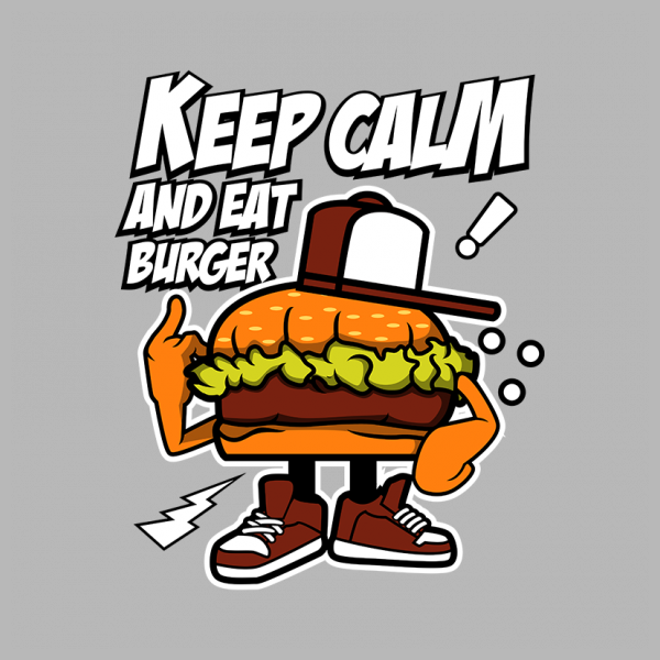 vector illustration of KEEP CALM AND EAT BURGER CARTOON, this image is very cute for t-shirts and posters, this design is available in the form of files, CDR, AI, transparent backround PNG, JPEG, SVG, EPS, mookup not included
