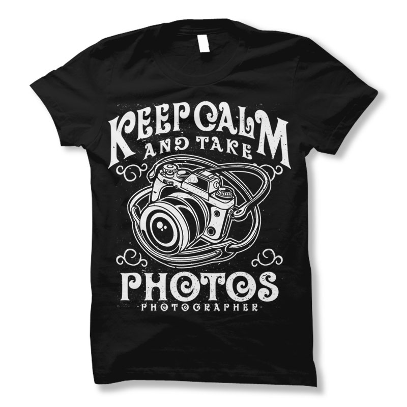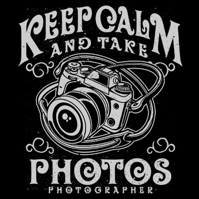 Keep Calm And Take Photos Tshirt Design Template based on vector files , such as AI and CDR also with PSD separated Layers file, the design has 1 color print, it can be used for digital printing and screen printing.