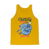 Vector illustration of skull chilling on the bucket of ice ready for summer season. Made with 80's style graphic. Ready to print on t-shirt.
