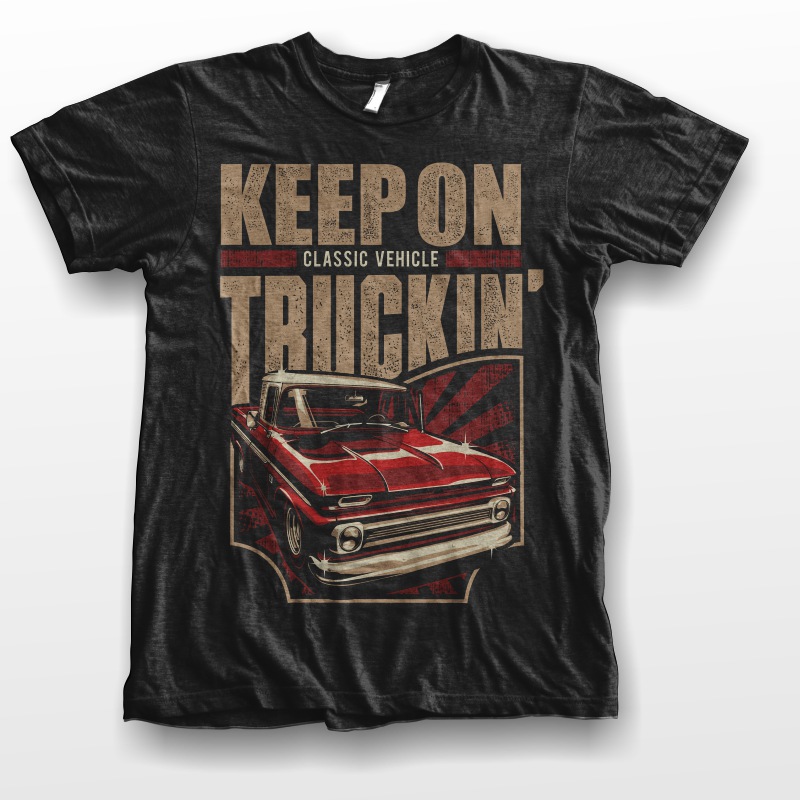 Tittle " Keep On Truckin' " This design use 3 colors on Black t-shirt. it is high quality vector format, easy for editing process, available for Adobe Illustrator, and Corel Draw and can be used for digital printing and screen printing.