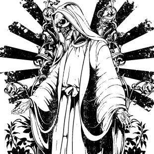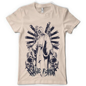 Keep the faith T-shirt design template in vector format, featuring detailed saint skull now available for Adobe Illustrator, Adobe Photoshop and Corel Draw and can be used for digital printing and screenprinting .