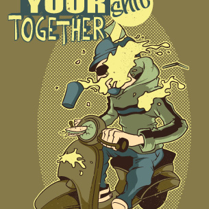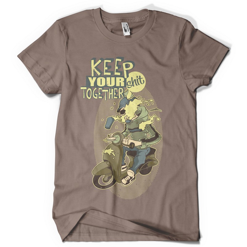 Keep your shit together graphic design template in vector format, featuring detailed motor- scooter boy now available for Adobe Illustrator, Adobe Photoshop and Corel Draw and can be used for digital printing and screenprinting .