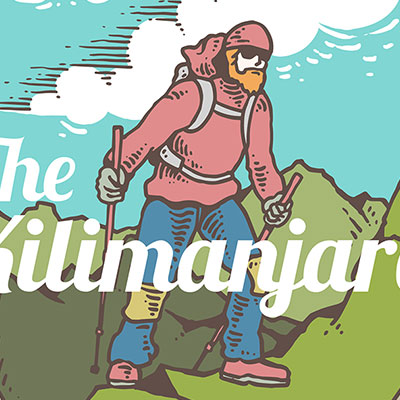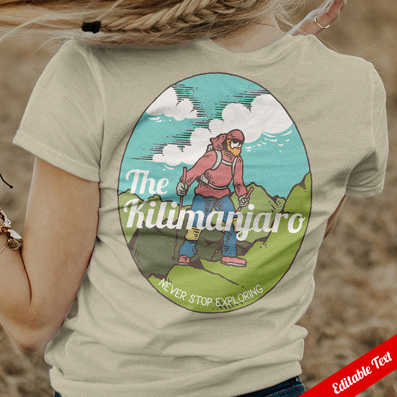 Vector illustration of a man doing adventure and hiking on the mountain with beautiful scenery. Ready to print on t-shirt.