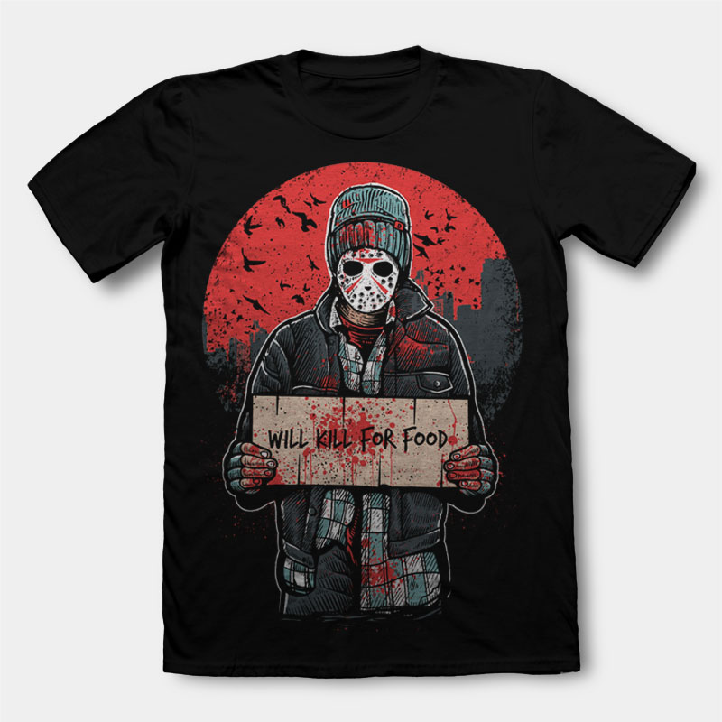 Kill For Food concept is Homeless Serial Killer looking for work , hope you like the artwork, this artwork is in PSD formats, ready for print. The artwork can be used for digital printing and screenprinting.The file is separated with every element on its own layer, Enjoy