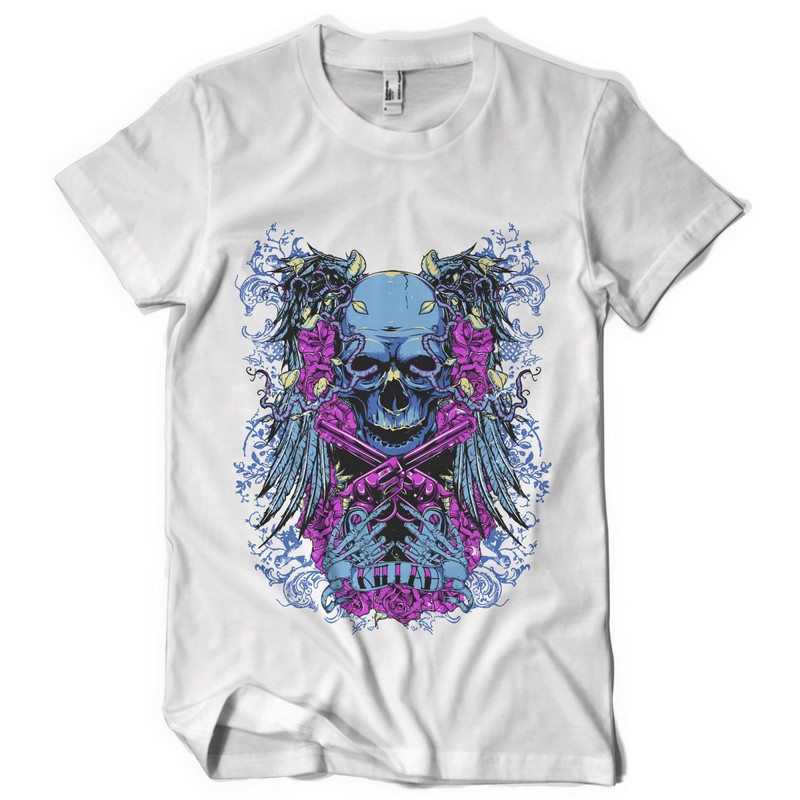Killah design template in vector format, featuring detailed killer skull now available for Adobe Illustrator, Adobe Photoshop and Corel Draw and can be used for digital printing and screenprinting .