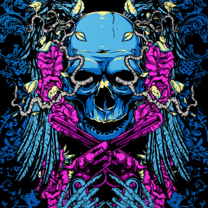 Root invated skull holding crossed guns