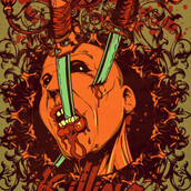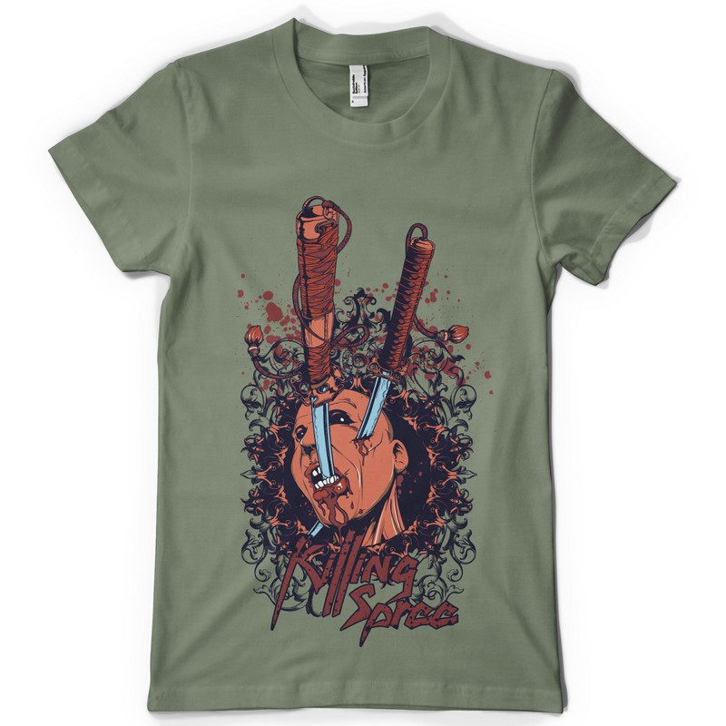 Killing spree graphic design template in vector format, featuring detailed stabbed face now available for Adobe Illustrator, Adobe Photoshop and Corel Draw and can be used for digital printing and screenprinting .