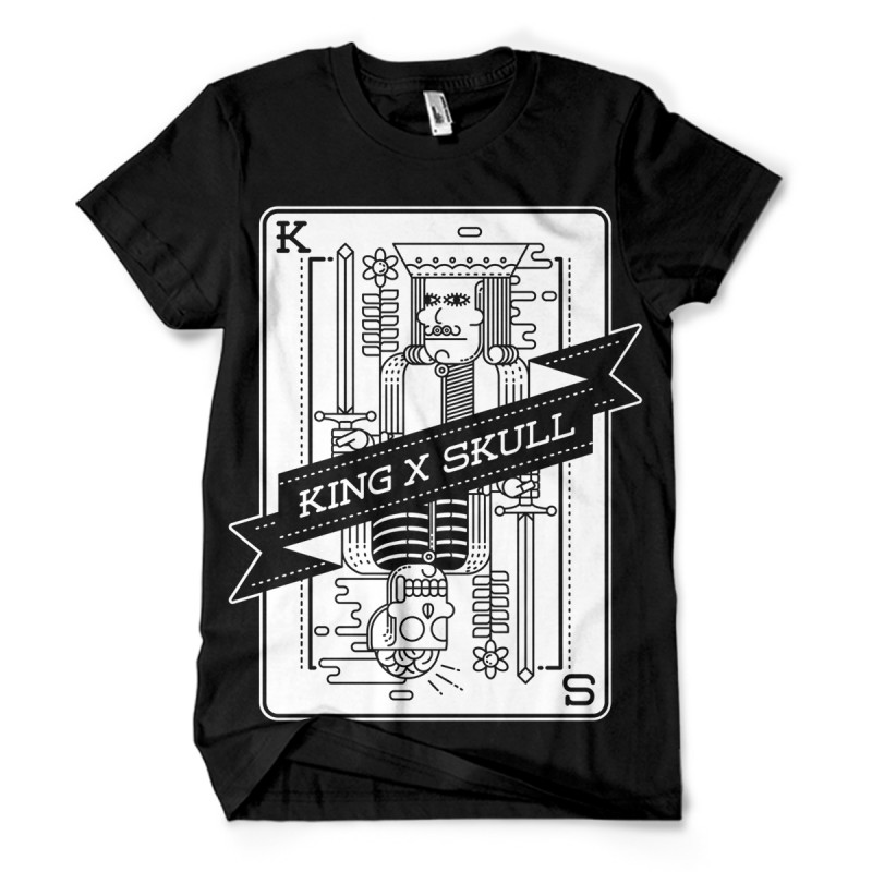King and Skull. T-shirt design use 1 color on white or black with EPS vector file with separate color layer by layer. For recomended apply to front print.