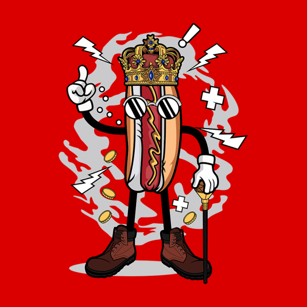 Vector illustration of KING HOTDOG, this image is very cute for t-shirts and posters, this design is available in the form of files, CDR, AI, transparent backround PNG, JPEG, SVG, EPS, mookup not included.