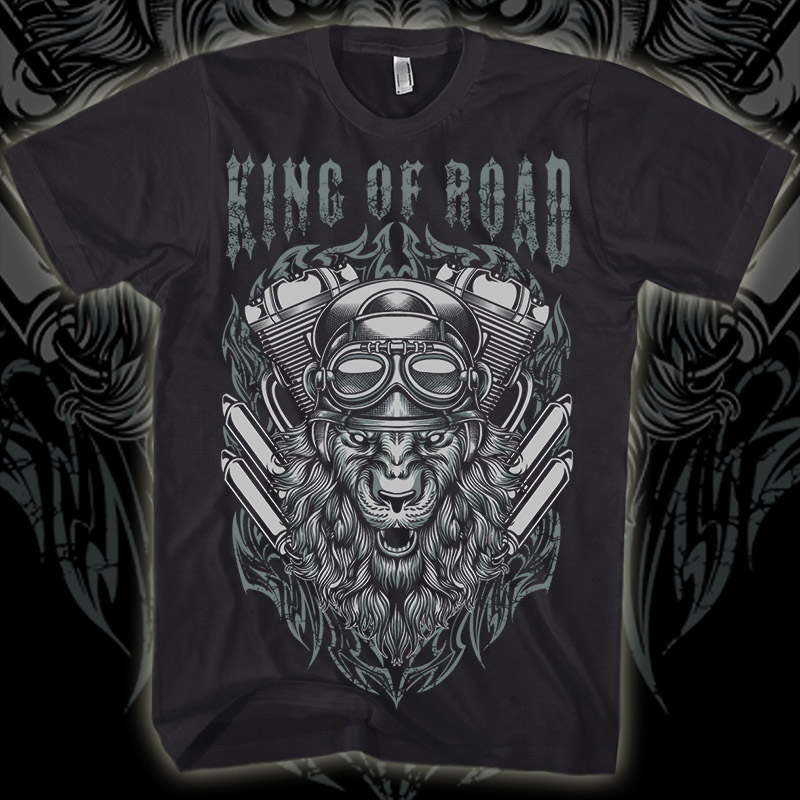 King of Road T-shirt design Template with Adobe Illustrator, the file is Ai separated Layers and Eps. 2 colors can be used for digital printing and screen printing.