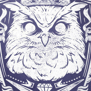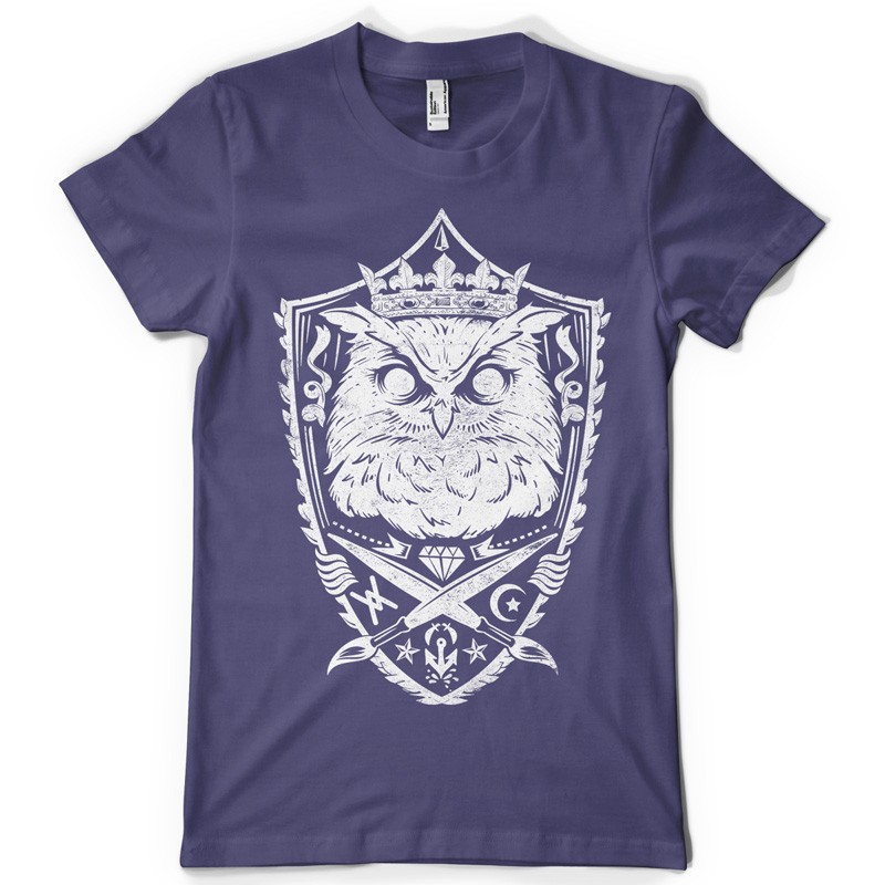 King of the night design template in vector format, featuring detailed angry king owl now available for Adobe Illustrator, Adobe Photoshop and Corel Draw and can be used for digital printing and screenprinting .