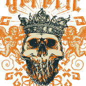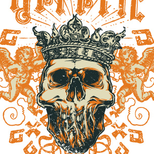 Digital design featuring detailed creepy king. King skull template is available in vector format and can be used for digital printing and screenprinting. The file will be available for Adobe Illustrator, Adobe Photoshop and Corel Draw.
