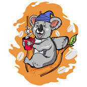 vector illustration of koala drinking coffee, this image is very cute for t-shirts and posters, this design is available in the form of files, CDR, AI, transparent backround PNG, JPEG, SVG, EPS, mookup not included