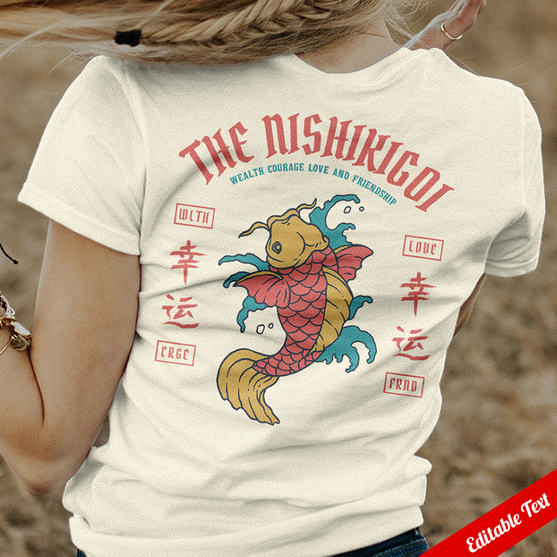 Vector illustration of koi with vintage tattoo japanese illustration style. Ready to print on t-shirt.