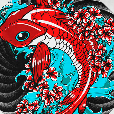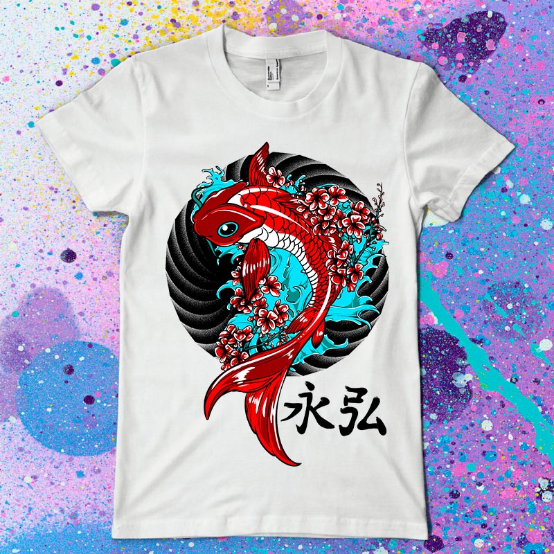 Koi t-shirt design features a japan design with detailes. Screen print now available for Adobe Illustrator, Adobe Photoshop and can be used for digital printing and screenprinting.