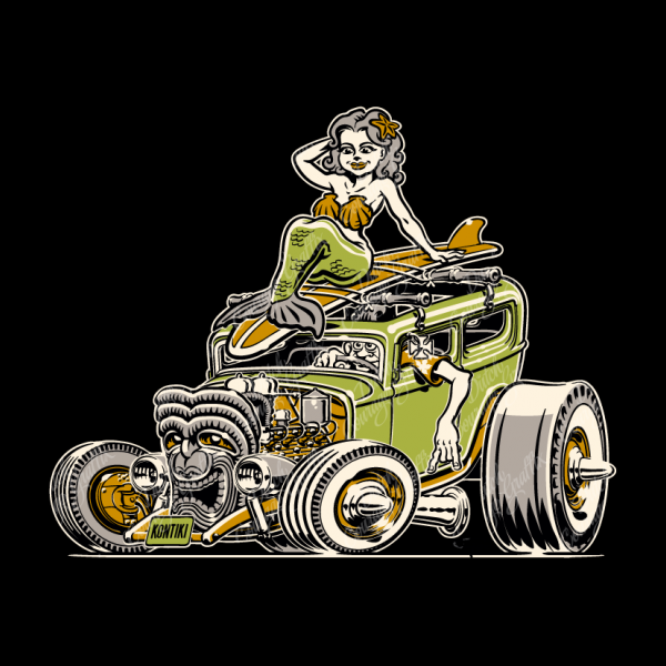 Kon Tiki Hot Rod Mermaid Cartoon