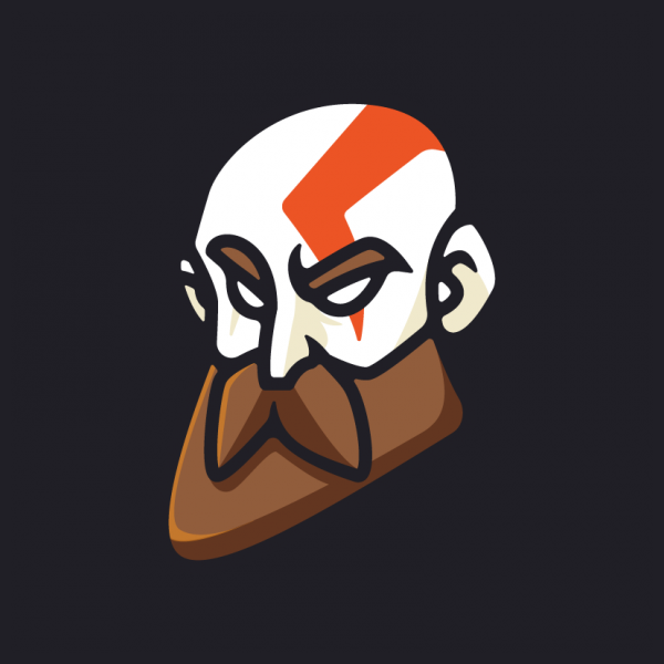 Kratos God of War simple art style. can be used for digital printing and screen printing. inspired from God of War Game.