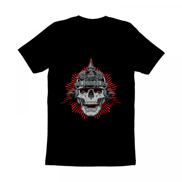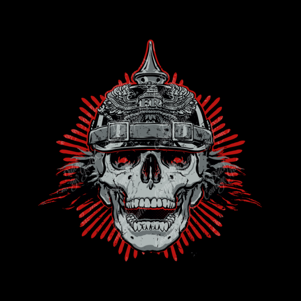 Skull wearing German WW1 Pickelhaube spiked leather helmet - “Kraut Rocker” - vector illustration