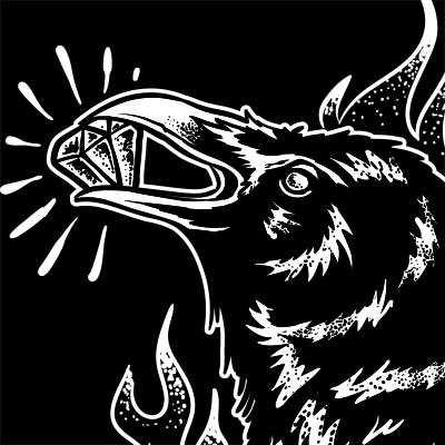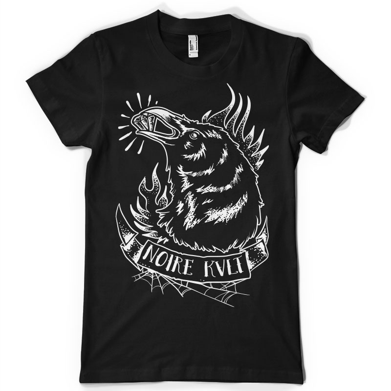 Kult Noire t-shirt design features a hand drawn crow head holding a diamond . This is an Adobe Illustrator file, ready for print. Files included are Eps. The template can be used for digital printing and screenprinting.The file is well organised with every element on its own layer, including artwork , and background