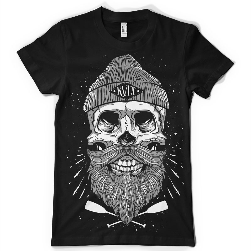 Bearded skull with beanie t-shirt features a detailed hand drawing of a skull. This is an Adobe Illustrator file, ready for print. Files included are Eps. The template can be used for digital printing and screenprinting.The file is well organised with every element on its own layer, including artwork and background,text,etc.