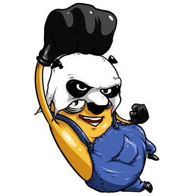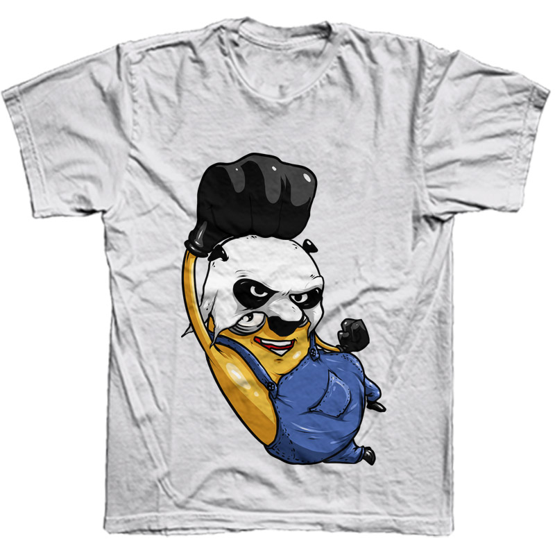 "Kungfu Mini Panda" T-shirt design featuring a cartoon character. The file is suitable for Adobe Photoshop and can be used for digital printing and screenprinting.