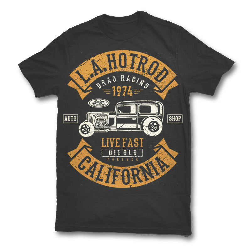LA Hotrod Tshirt Design Template based on vector files , such as AI and CDR also with PSD separated Layers file, the design has 3 color print, it can be used for digital printing and screen printing.