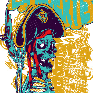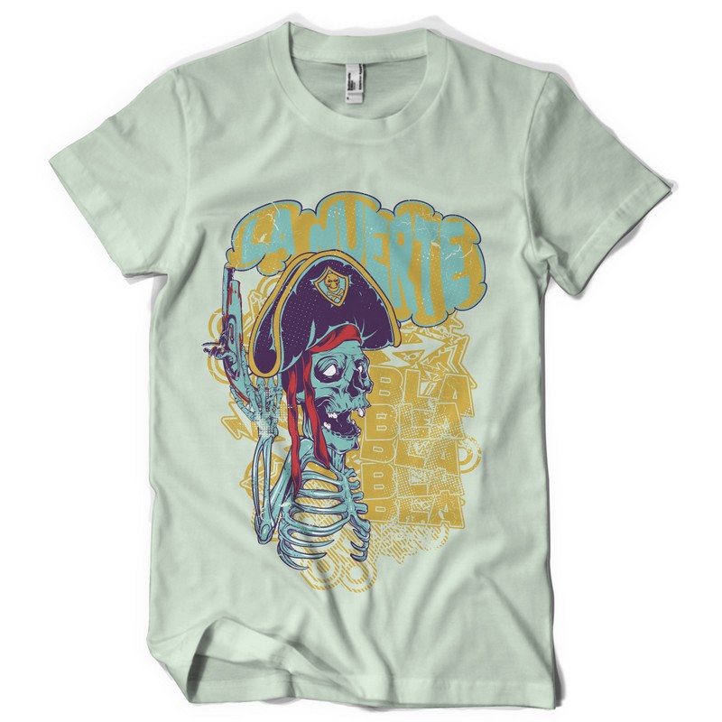 La muerte graphic design template in vector format, featuring detailed pirate skull now available for Adobe Illustrator, Adobe Photoshop and Corel Draw and can be used for digital printing and screenprinting .